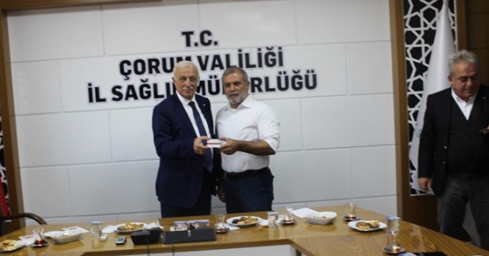 Çorum Şehit Aileleri ve Vazife Malulleri Derneği Başkanı Galip Deniz ve dernek üyeleri organ bağışı haftasında örnek bir davranışa imza atarak organlarını bağışladılar. Organlarını bağışlamak için İl Sağlık Müdürlüğü’nde İl Sağlık Müdürü Ömer Sobacı ile görüşen dernek başkanı Galip Deniz ve dernek üyeleri, organ bağışının önemine dikkat çekti. Organ bağışı konusunda toplumun duyarlı ancak yine de bağış sayısının yeterli olmadığını ifade eden İl Sağlık Müdürü Ömer Sobacı; bu konuda farkındalığın artırılması gerektiğini belirterek; “İl Sağlık Müdürlüğü olarak organ bağışı konusunda faaliyetlerimiz sürekli devam etmektedir. Organ bağışı konusunda toplumun tüm kesimine büyük görevler düşüyor. Bugün yapmış olduğunuz bu örnek davranış ve oluşturduğunuz farkındalık için sizlere çok teşekkür ediyorum.” dedi. İl Sağlık Müdürü Uzm. Dr. Ömer Sobacı, Sağlık Hizmetleri Başkanı Dr. Arif Pilgir ve Sağlık Hizmetleri Başkan Yardımcısı Dt. Emine Paydar, şehit yakınları ve gazilerimize organ bağışı kartlarını takdim ettiler.