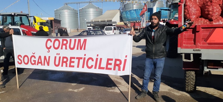 Deprem bölgelerine bir kamyon soğan göndereceklerini kaydeden Kılıç, “Türkiye’de üretim politikamız kalmamıştır, kiminle görüştük ise ÇKS kayıtlarında Alaca İlçemizde 12 bin soğan görünüyor. Bu istatistiklerin yanlış olduğunu ifade ederek bizde diyoruz ki Alaca’da 50 bin ton soğanımız var. Çorum ve İlçelerinden 200 bin ton soğan var. Yarın bu kadar soğan çöpe döküldüğü zaman yetkililerimiz o zaman ne diyerek çok merak ediyoruz. O zaman biz yanıldık lafını kabul etmiyoruz, çünkü biz yanıldık tahtası değiliz. Üretim az olur, hastalık olur, yağmur olur, dolu olur, depoda ürün az olur o zaman da biz terörist ilan ediliriz. Mal yok olur terörist oluruz, mal çok olur defada kapılar kapanır. Ne olacak biz çiftçilerin halimiz. Bir aydır soğanlarımı satamadığım için borçlarımı ödeyemiyorum. Traktörlerimizin hepsi bankalara kredili” şeklinde konuştu.