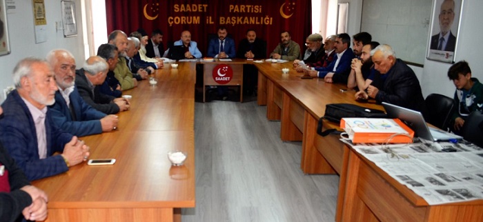 Saadet Partisi İl Teşkilatı her ay mutat olarak gerçekleştirilen genişletilmiş il divan toplantısını Faruk Cıdık başkanlığında Saadet Partisi Çorum İl binasında gerçekleştirildi. Divana Saadet Partisi Genel İdare Kurulu Üyesi Ahmet Bölükbaş Saadet Partisi İl Başkanı Faruk Cıdık, Merkez İlçe Başkanı Orhan Sakınmaz, İsomder İl Başkanı Abdullah Gökgöz, Esder Çorum Şube Başkanı Sedat Aksungur Cansuyu Deneği Çorum Şube Başkanı Adnan Cıdık, İlçe Başkanları ve teşkilat mensupları katıldı. SP İl Başkanı Faruk Cıdık, toplantıda çeşitli konulara ilişkin açıklamalarda bulundu. Cıdık, “Güçlü bir ülke olmak istiyorsak iç barışı sağlamalıyız. Dışlamak kutuplaşmak sadece partilere fayda verir, ülkeye değil. İç kavga, çekişme emin olun dış güçlerin bayram etmesine vesile olur. Bizi zayıflatır. Ne olur birbirimizin yanına gelsek. Ne olur kucaklaşsak. Birbirimizin yanına gelmek, aynı politikaları benimsiyoruz manasına da gelmez” dedi.