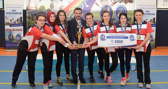 Çorum Belediyesi tarafından “KYK Spor Oyunları”nda futsal, voleybol, dart, masa tenisi, satranç ve bowling de dereceye giren takımlara ve sporculara 25 bin 350 TL’lik ödül dağıtıldı. Başarılı sporculara ayrıca kupa ve madalya verildi. Ödül, kupa ve madalyaları, Belediye Başkanı Muzaffer Külcü, KYK İl Müdürü Erol Kavuncu, Belediye Başkan Yardımcısı Turhan Candan, Hitit Üniversitesi Sekreteri Erdal Kanık, Gençlik Hizmetleri ve Spor İl Müdürü Haşim Eğer KYK Şube müdürleri takdim etti.