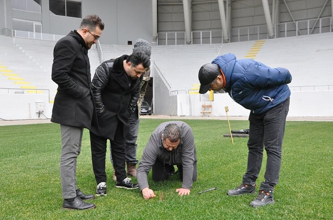 Yapımında sona neredeyse sona gelinen yeni stadyum ile Dr. Turhan Kılıçcıoğlu Stadyumu’nun çimleri incelendi. Türkiye Futbol Federasyonu Denetçisi ve Çim Uzmanı Dr. Tuğrul Hocaoğlu, Çorum’a gelerek her iki sahanın da zemin ve çimlerini denetledi. İlk olarak yapımı bitme aşamasında çeşitli numuneler alan ve ölçümler yapan Hocaoğlu’na burada Kulüp Başkan Yardımcısı Mustafa Altunkaya, Kulüp Müdürü Samet Çelenk ve Şantiye Şefi Atila Türker Saylam eşlik etti. Daha sonra Dr. Turhan Kılıçcıoğlu Stadyumu’na geçen Dr. Tuğrul Hocaoğlu, burada da Stad Müdürü Kemal Kan eşliğinde gerekli olan numuneler aldı ve ölçümleri yaptı. Her iki stad zeminlerinin de bakımları noktasındaki gerekli bilgileri yetkililere verdiğini ifade eden Hocaoğlu, zemin ve çimlerin daha sağlıklı korunabilmesi için yazacağı raporları daha sonra kulübe göndereceğini dile getirdi.
