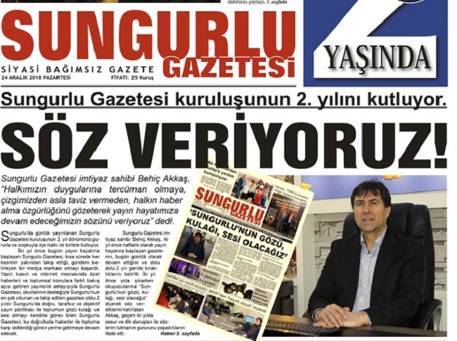 SUNGURLU GAZETESİ 2. YILINI KUTLUYOR