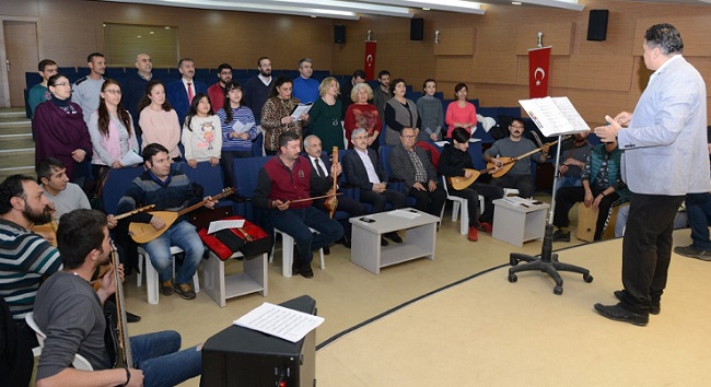 Belediye Başkan Yardımcısı Zeki Gül, Çorum Belediyesi Türk Halk Müziği Korosunu ziyaret ederek çalışmalarıyla ilgili bilgiler aldı. Şehrimizde yaşayanların huzuru ve mutluluğu için sosyal ve kültürel faaliyetlerin önemine vurgu yapan Zeki Gül, “Göreve başladığımızda ilk göz ağrımız bu korodur. Korolarımızın sayısının artması bizleri çok mutlu eder. Spordan örnek verecek olursak. Çorum Belediyespor 3. Lig’de. Çorum’un 2.Lig’de 1.Lig’de ayrı takımları olması profesyonel manada daha iyi olacağını düşünüyorum” dedi. Gül, “Belediye’ye ilk göreve başladığımızda bize yol arkadaşlığı yapan arkadaşlarımızı ziyaret etmek istedim. İnşallah THM Korosu Mayıs 2018’e kadar çalışmalarına devam ederek yoğun çalışmanın ardından Bahar Konseri adı altında Çorumlu hemşehrilerimize muhteşem bir konser verecek. Sizler bu çalışmalarınızı hiç kimse görmeden akşamları yapıyorsunuz. İnşallah bu çalışmalarınız artarak devam edecek. Kültür ve Sosyal İşler Müdürümüz Mustafa Ercan beyle birlikte her zaman gelemiyoruz. Gönlümüz her zaman sizlerle. Biz her zaman Belediyemiz adına yapacağımız her faaliyette bir ve beraber olduğumuz sürece başarılı olmamamız için hiçbir sebep yok. Koro şefi Kazım Mercan, koro yöneticisi Kemal Kan ve üyelerimize teşekkür ediyorum.” dedi. Gül ziyaret sonunda koro üyelerine tatlı ikram ederek, THM korosuna yeni dönem çalışmalarında başarılar diledi.