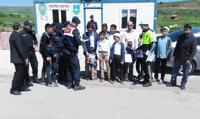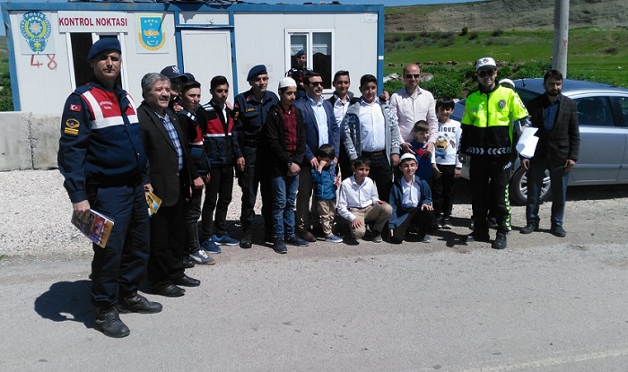 Çorum’un Bayat ilçesinde 4-10 Mayıs Trafik güvenliği etkinlikleri kapsamında trafik uygulaması yapıldı. Uygulamaya İlçe Kaymakamı Oğuzhan Ocak, İlçe Jandarma Komutanı Sedat Erdaş, İlçe Milli Eğitim Müdür V. Eren Davul, İlçe Müftüsü Mehmet Kapucu’da eşlik etti. Uygulamada, sürücülere ve yolculara güvenli sürüş, trafik kurallarına uyma konusunda rehberlik faaliyetlerinde bulunularak kolonya ve çikolata ikramı yapıldı.