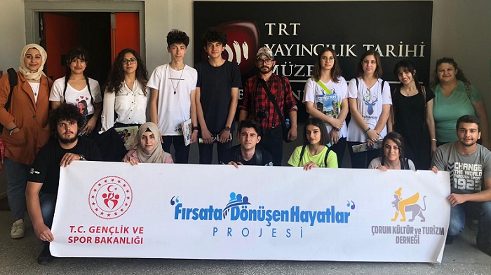 Çorum Kültür ve Turizm Derneği tarafından yazılarak Gençlik Projeleri Destek Programı 2018/2 Kapsamında Gençlik ve Spor Bakanlığı desteğiyle hazırlanan Fırsata Dönüşen Hayatlar Projesi öğrencileri için TRT’ye teknik gezi düzenledi. Fırsata dönüşen hayatlar projesi kapsamında yapılan TRT ziyaretinde, TRT Yayıncılık Tarihi Müzesi, Arı Stüdyoları, Naklen Yayın Servisi ve Aktüel haber servisleri gezilerek bilgiler alındı. TRT Yayıncılık tarihi Müzesinde; TRT’nin ilk radyo anonsundan, ilk haber spikerine, Erkan Yolaç’tan Keloğlan ve Bilgehan dede karakterlerine, TRT’nin ilk kullandığı radyodan, fotoğraf makinasına varıncaya kadar birçok yeri gezme görme ve bilgi alma şansları bulan kursiyerler ardından naklen yayın araçları ve Aktüel Haber servisini gezerek güne devam ettiler. 35 yıldır TRT’de olan usta bir kameraman ile sohbet etme fırsatı bulan öğrenciler mesleki tecrübeleri dinlediler. Son olarak Arı stüdyolarına yapılan ziyaret ile canlı yayın öncesi hazırlıkların tüm süreçlerini, ses ve ışık organizasyonunu, ana kumanda merkezini, RTL ve Naklen Yayın odalarını, Rejiyi, Efekt odalarını yakından görme ve detaylı bilgi alma şansını yakaladılar. Önümüzdeki aylarda dizi seti ziyareti, yönetmen ve oyuncuyla yapılacak söyleşi ile etkinliklerin devam edeceğini belirten Fırsata Dönüşen Hayatlar Proje Koordinatörü Dilek Bilgin, amacımız gençlerimizin hayatlarına dokunabilmek, meslek seçimleri öncesinde ilgi duydukları alanlarla alakalı olabildiğince bilgi ve deneyim sahibi olmalarını sağlamak şeklinde konuştu.