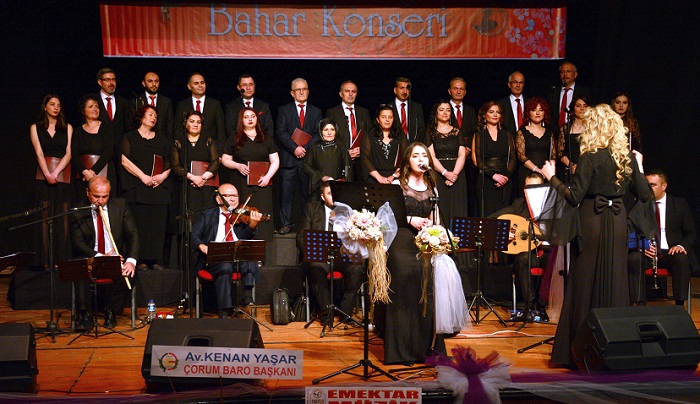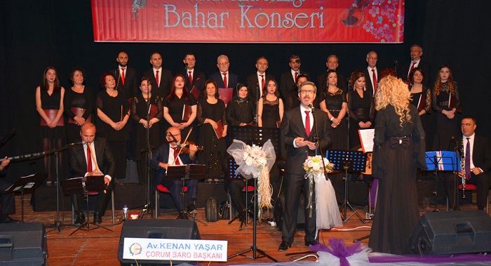 Çorum Valiliği himayesinde İl Kültür ve Turizm Müdürlüğü tarafından kurulan Türk Sanat Müziği Korosu, klasik Türk müziği eserlerinden oluşan muhteşem bir repertuarla Bahar Konseri verdi. Konsere Çorum halkı büyük ilgi gösterdi. Devlet Tiyatro Salonunda düzenlenen Bahar Konserine, Çorum Vali Yardımcısı Recep Yüksel ve eşi Derya Yüksel, Çorum Belediye Başkanı Dr. Halil İbrahim Aşgın, İl Özel İdaresi Genel Sekreteri Recep Çıplak ve kurum amirleri ve çok sayıda vatandaş katıldı. Konser öncesi bir konuşma yapan Çorum Belediye Başkanı Dr. Halil İbrahim Aşgın, “Kadim medeniyetlerin şehri güzel şehrimiz için ortaya koyulan her gayretin yanında olacağız. İl Kültür ve Turizm Müdürlüğümüz Türk Sanat Müziği Korosu bu akşamki konseri ile şehrimizin kültür ve sanat dünyasına önemli bir katkı sunmuştur. Koromuza her türlü desteği vermeye devam edeceğimizi ifade ediyorum” dedi. İl Kültür ve Turizm Müdür V. Ömer Arslan ise “Bir sanat eseri ile karşılaşırsınız. Bu eser size o kadar çok şey anlatır ki saatlerce konuşsanız o eserin size anlattıklarını ifade edemezsiniz. İl Kültür ve Turizm Müdürlüğümüz Türk Sanat Müziği Korosunun bu akşamki konseri adeta böyle bir esere benzemektedir. Bu eserin ortaya çıkmasında en büyük pay elbette Halil Özçelebi hocamıza aittir. Türk Sanat Müziğinde 60 yıla yakın emeği ile bu eserlerin müelliflerini yetiştirmiş ve bu gün bu eserler ortaya çıkmıştır. Şükranlarımızın bir ifadesi olarak bu çiçeği Müdürlüğümüz ve sizler adına kendisine takdim ediyorum. Aylar süren bir ön hazırlık sürecinden sonra bu muhteşem konserin mimarları olan başta Koro Şefimiz Selda Erdost Hanımefendiye, Koro ve Saz Heyetine teşekkürlerimizi sunuyoruz. Hiç şüphe yok bu konser güzel şehrimiz Çorum’un Kültür ve sanat ajandasında nadide bir sanat eseri olarak yerini almıştır. Elbette bir sanat eseri onun kıymetini bilen insanların sevgi ve teveccühü ile korunur ve sonraki nesillere aktarılır. Salonu dolduran sanatsever insanlarımızın coşkusu ve desteği bunun en güzel delilidir. Bu Konser “Çorumlu”nun Yaptığını Herkes Yapamaz” sloganımıza yakışır bir kalitede olmuştur.” şeklinde konuştu. İki bölüm halinde dinleyicilere müzik ziyafeti yaşatan İl Kültür ve Turizm Müdürlüğü TSM Korosu’nun Bahar Konseri çiçek takdimi ile sona erdi.