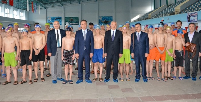 Çorum İl Milli Eğitim Müdürlüğü ile Gençlik Hizmetleri ve Spor İl Müdürlüğü arasında yapılan protokol kapsamında öğrencileri için düzenlenen yüzme kursları başladı. Olimpik Havuzda ilk olarak Şehit Erol Olçok Anadolu İmam Hatip Lisesi Pansiyon Öğrencileri için başlatılan kursun ilk dersine AK Parti Çorum Milletvekili Ahmet Sami Ceylan, İl Milli Eğitim Müdürü Seyit Ali Büyük, Gençlik Hizmetleri ve Spor İl Müdürü Haşim Eğer katıldı. Kurs öncesi konuşa Gençlik Hizmetleri ve Spor İl Müdürü Haşim Eğer, “Öğrencilerimize Milli Eğitim Müdürlüğümüz ile yapmış olduğumuz proje kapsamında burada Olimpik Havuzumuzda yüzme kursu verilecektir. Proje ikişer ay şeklinde diğer okullardaki öğrencilerimize yönelik devam edecektir.” dedi İl Milli Eğitim Müdürü Seyit Ali Büyük ise yaptığı konuşmada “Çorum için ilk diyebileceğimiz önemli bir etkinlik için buradayız. Akademik başarı üzerinde yoğun bir şekilde çalışıyoruz.