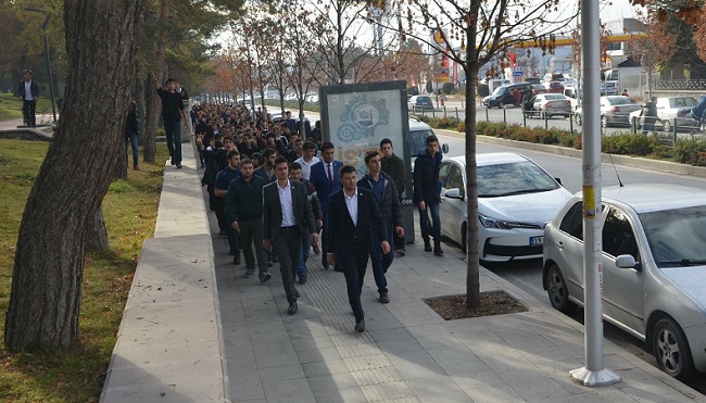 Çorum Ülkü Ocakları Ortaöğretim Biriminden yaklaşık 500 genç Çorum Şehitliğini ziyaret etti. Çorum Ülkü Ocakları önünde toplanan gençler Çorum Şehitliğine kadar yürüyerek, Şehitlik ziyaretinde bulundular. Kur’an-ı Kerim Tilavetiyle başlayan ziyarette tüm şehit mezarları ziyaret edilerek dua edildi. Çorum Ülkü Ocakları Ortaöğretim Birim Başkanı Gani Koçak, burada yaptığı konuşmada “Türkiye devletinin bağımsızlığı, vatanın dirliği, milletin birliği için canından geçen kahramanlarımız her an aklımızdadır, yanımızdadır” dedi. Gani Koçak konuşmasında şöyle dedi: “Bugün burada, tarihimizin şanlı sayfalarında yerini almış, cennet vatanımız için canlarından geçmiş aziz şehitlerimizin huzurunda Bir daha kucaklaşmak için toplandık. Türkiye devletinin bağımsızlığı, vatanın dirliği, milletin birliği için canından geçen kahramanlarımız her an aklımızdadır, yanımızdadır. Ülkücü gençlik şehitlerine ve onların kıymetli emanetlerine canı pahasına sahip çıkacaktır, çıkmaktadır. Çünkü onlar; biz bugün burada olalım diye gözlerini kırpmadan can vermiş, bize ağır bir sorumluluk yüklemiştir. Ülkücü gençlik bunun farkındadır ve herkes emin olsun ki her ülkücü bir şehit adayıdır. Yiğit Bozkurtlar şehitlerimizin bizlere yüklediği sorumluluk gece gündüz demeden çalışarak en iyi ve en güzeli mensubu olmaktan şeref duyduğumuz yüce Türk milletinin hizmetine sunmaktır. Bizler de şanlı ecdadın açtığı yolda, bilge liderimizin gösterdiği “lider ülke Türkiye” hedefine ulaşmak için kanımızın son damlasına kadar çalışacağız ve mutlaka başaracağız. Kardeşlerim millet, vatan, devlet ve iman aşkı bizi bir arada tutan yegane güçtür. Bu kutsalları için can vermek inanmış bir Müslüman Türk için erişilecek en yüce makam, en ulvi mertebedir. Bu makam peygamber efendimize komşu şehitlik makamıdır tüm samimiyetimle söylemek isterim ki burada bulunan her kardeşim o makamın sevdalısıdır. Aziz şehitlerimiz rahat uyusunlar vatan nöbeti ülkücü gençliktedir. – Haine verilecek en güzel cevap ülkücü gençliktir. – bölücülerin karşısındaki siperde ülkücü gençlik vardır. – bin yıllık kardeşliğin harcı ülkücü gençliktir. Görevimizin bilincinde sorumluluğumuzun farkındayız. Biz biliyor ve inanıyoruz ki yolumuz uzun, yükümüz ağır, zafer inandığımız kadar yakındır. Bu duygularla aziz şehitlerimizi rahmet, minnet ve şükranla bir kez daha anıyor Cenabı Allah’tan rahmet diliyorum” dedi.