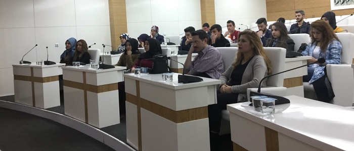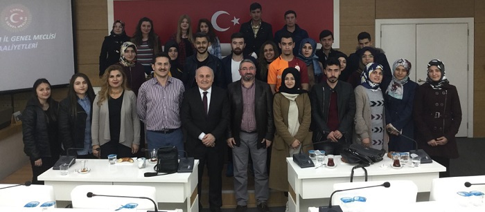 Çorum Hitit Üniversitesi Sosyal Bilimler Fakültesi Öğrencileri İl Genel Meclis Başkanı Halil İbrahim Kaya’yı ziyaret etti. Hitit Üniversitesi Sosyal Bilimler Fakültesi Öğretim Üyesi Halil İbrahim Aşgın Yerel Yönetimler Programı ilk öğrencilerini yerel yönetimler dersi ile ilgili uygulamaları yerinde görmek ve bilgiler almak için İl Genel Meclis Başkanı Halil İbrahim Kaya’yı ziyaret etti. Ziyarette İl Genel Meclisinin görevleri ve faaliyet alanlarıyla ilgili öğrenciler bilgilendirildi. Bilgilendirme esnasında Başkan Kaya, öğrencilere birikimlerini aktardı.