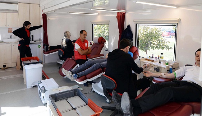 Hitit Üniversitesi akademik ve idari personeli Rektörlük Binasında Türk Kızılayı’na kan bağışında bulunarak destek verdi. Sosyal sorumluluk anlamında Üniversitede her yıl birkaç kez gerçekleştirilen kan bağışı işlemi, bu yıl da yapılarak ihtiyaç sahiplerine destek verildi. Kızılay ekibi kan bağışı yapmanın ihtiyaç sahibi olan insanların sağlığına kavuşmalarını sağladığını, aynı zamanda kan veren kişiler için olumlu yanları olduğu bilgisini de verdi. Daha önce de Hitit Üniversitesi ve Türk Kızılay’ı arasında iş birliği protokolü imzalanmış, Üniversite de öğrenim gören öğrencilerin kan bağışı hakkında daha da bilinçlenmesini sağlamak amacıyla sunumlar gerçekleştirilmişti.