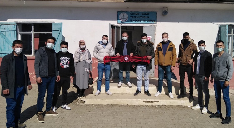 Yaptıkları örnek çalışmalarla dikkat çeken Üniversiteli Çorumsporlular son olarak ÇKF Store’den aldıkları ürünleri Bayat Tepekutuğun köyünde okul öğrencilerine dağıttılar.