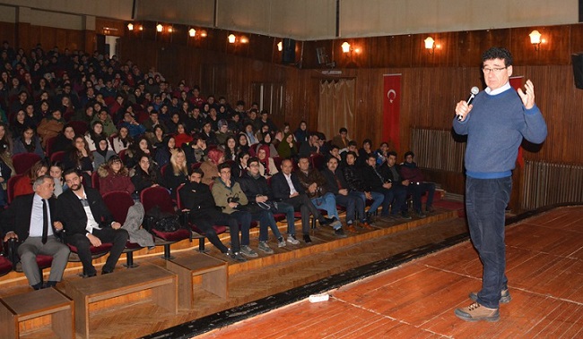 Çorumda Eğitimin Kalitesini Artırma Projesi kapsamında Çorum’a gelen Eğitim Uzmanı Süleyman Beledioğlu Yükseköğretim Kurumları Sınavı ve Temel Yeterlilik Testi için hazırlanan öğrencilere seminer verdi. İl Milli Eğitim Müdürlüğünün yürüttüğü Çorumda Eğitimin Kalitesini Artırma Projesi (ÇEKAP) kapsamında Çorum’a gelen Eğitim Uzmanı Süleyman Beledioğlu Yükseköğretim Kurumları Sınavı (YKS) ve Temel Yeterlilik Testi (TYT) için hazırlanan öğrencilere seminer verdi. Devlet Tiyatro Salonunda yapılan seminerde Beledioğlu yeni sınav sistemi ve çalışma yöntemlerini anlattı. Sınav sisteminin değişmediğini vurgulayan Beledioğlu: “Sınavın uygulama biçimde değişikler var. Sorumlu olunan konu içerikleri yine aynı. Öğretmenlerinize ne kadar çok güvenirseniz daha verimli bir işbirliği yapmış olursunuz. Kaygılarınızı korkuya çevirin. Kaygı belirsizliği ifade eder. Korku da ise kaynak bellidir. İnsan beyni anladıkları içerisinde tekrar edilenleri kaydeder. Ders çalıştıktan sonra bilgisayar yada televizyona bulaşmadan yatın. Farklı kaynaklardan soruların kavramlarını çıkararak çalışın. Çalışma ortamlarınız sınav ortamından farklı olmasın.” dedi. Öğrencilerden gelen sorulara da cevap veren Beledioğlu “İnsan beyninin başarıdan haz aldığını, maddi kazanımların mutlu olmayı sağlamayacağını” belirtti. Programdan sonra İl Milli Eğitim Müdürü Seyit Ali Büyük ile görüşen Eğitim Uzmanı Süleyman Beledioğlu Çorum’da eğitim alanında başka illere örnek olacak çalışmalar yapıldığını takdir ederek izlediğini ifade etti.