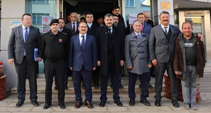 Çorum Valisi Mustafa Çiftçi, ilçe ziyaretleri kapsamında Alaca ilçesini ziyaret ederek bir dizi incelemelerde bulundu. İl Emniyet Müdürü Murat Kolcu ve il idare şube başkanlarının da hazır bulunduğu ziyarette Vali Çiftçi, ilk olarak Alaca Kaymakamlığını ziyaret etti. Alaca Kaymakamı Ramazan Kurtyemez, Alaca Belediye Başkanı Muhammet Esat Eyvaz ve ilçe idare şube başkanları tarafından karşılanan Vali Çiftçi, daha sonra Kaymakamlık makamına geçerek, Kaymakam Kurtyemez’den ilçenin durumu ile ilgili brifing aldı. Belediye Başkanlığını ziyaret eden Çiftçi, Belediye Başkanı Muhammet Esat Eyvaz’dan çalışmaları hakkında bilgi aldı. Alaca Belediye Başkanlığı ziyareti sonrasında, Vali Çiftçi beraberindekiler ile birlikte Alaca TSO Başkanı Günser Şirin’i ziyaret ederek oda çalışmaları hakkında bilgi aldı. Alaca’yı ziyaretinde Gençlik Merkezi’ne giden Çiftçi, burada Kaymakam Kurtyemez’den bilgi aldı. Vali Çiftçi daha sonra Alaca Şehit Aileleri ve Gaziler Derneği binasının açılışını gerçekleştirerek, dernek şubesinin birlik ve beraberliğe katkı sunmasını diledi. Ziyaretler kapsamında Alaca Anadolu İmam Hatip Lisesinde merkez ve köy mahalle muhtarlarıyla bir araya gelen Vali Çiftçi, muhtarların mahalle ve köyleriyle ilgili sorunlarını dinleyerek, talep ve istekler konusunda, daire amirlerini talimatlandırdı. Vali Çiftçi toplantının ardından, Alacahöyük Müzesini ziyaret ederek, Alacahöyük ören yerinde de incelemelerde bulundu. Ören yeri ziyareti sonrasında Vali Çiftçi, 3000 yıllık Alacahöyük Hitit Barajında ve Hitit Barajı etrafında oluşturulan Rekreasyon Alanında İncelemelerde bulunduktan sonra ilçeden ayrıldı.