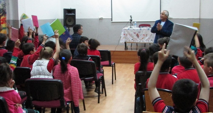 Başöğretmen Atatürk İlkokulu tarafından yürütülen “Her Sınıfın Bir Projesi Var” çalışmaları çerçevesinde 2/D Sınıf Öğretmeni Soner Özalp rehberliğinde yürütülen Küçük Yazarlar projesi sonuçlarını vermeye başladı. Öğrenciler tarafından hazırlanan öykü kitaplarını değerlendirmek, yazarlık, öykü yazma, yazma konusunda öğrenci motivasyonunu artırmaya yönelik destek için Çorumlu Yazar Erdal Şahin´i okulda misafir ettiler. Yazar Şahin öğrencilerle bir araya gelerek yazarlık, öykü yazarlığı, başarı vb. konularda sohbet etti. Sohbet sonunda öğrencilere kitaplarından hediye eden Şahin, öğrencileri yazmaya ve yazılı anlatım gücünün geliştirilmesine yönelik güzel bir çalışma olduğunu belirtti.