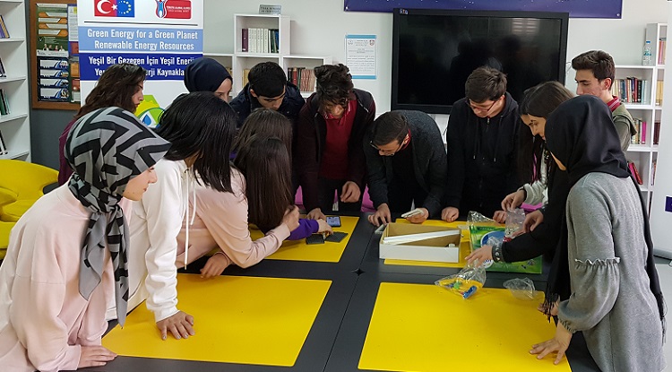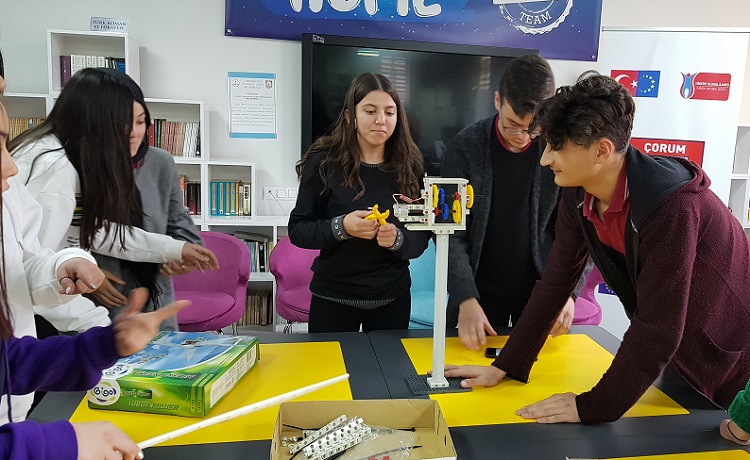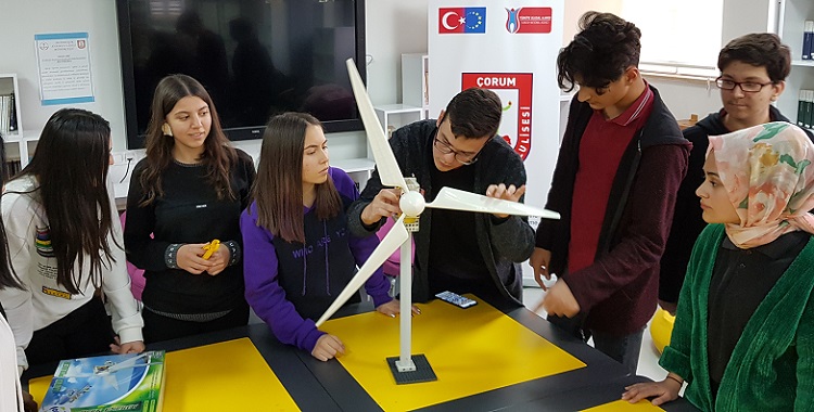 Çorum Mehmetçik Anadolu Lisesi tarafından 2018-1-ES01-KA229-050420_2 proje numarasıyla Erasmus+ kapsamında yürütülmekte olan “Yeşil Bir Gezegen İçin Yeşil Enerji: Yenilenebilir Enerji Kaynakları” adlı proje kapsamında proje iletişim kişisi Abdulhalik Kürşat Arık eşliğinde öğrencilerle birlikte yenilenebilir enerji konusunda atölye çalışması gerçekleştirildi. Yeşil Bir Gezegen İçin Yeşil Enerji, Yenilenebilir Enerji Kaynakları projesi ile yeni nesillerin fosil yakıtların zararları ve yeşil enerjinin faydaları konusunda bilinçlendirilmesi hedeflendiği açıklandı. Yapılan açıklamaya göre, “Bu kapsamda öğrencilerle birlikte rüzgar enerjisiyle alakalı atölye çalışması gerçekleştirildi. Rüzgar enerjisiyle alakalı bilgilendirilmenin ardından öğrenciler mini bir rüzgar enerjisi santrali inşa ettiler. Takım çalışması halinde gerçekleştirilen inşa süreci sonucunda rüzgar değirmeninin pervanesinin dönmesiyle elektrik üretimi sağlanmış ve değirmenin ucundaki ışık yandı. Yeni nesillerin fosil yakıtlar ve yeşil enerji konularında bilinçlendirilmeleri kadar enerjinin korunmasının önemini vurgulamak için proje kapsamında prizlere yapıştırılmak üzere “Gereksizse Söndür” etiketleri öğrencilerce yapıştırılmıştır. Okuldaki tüm prizlere bu etiketler yapıştırılmıştır. Proje İspanya, Romanya, İtalya ve Kayseri Osman Ulubaş Fen Lisesi’nin ortaklığıyla yürütülmektedir. Bu kapsamda Mehmetçik Anadolu Lisesi’nin ev sahipliği yaptığı Çorum ve Scoala Gımnaziala Valisoara’nın ev sahipliği yaptığı Romanya hareketlilikleri gerçekleştirilmiştir. Şubat ayı sonunda İtalya Hareketliliği gerçekleştirilecek olan projenin içeriği yenilenebilir enerji türlerinden “Güneş Enerjisi”nin ne tür yollarla elde edildiği üzerine olacaktır” ifadelerine yer verildi.