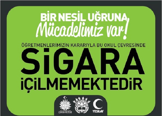 Çorum İl Milli Eğitim Müdürlüğü ile Türkiye Yeşilay Cemiyeti arasında “Yeşil Rozet” protokolü imzalandı. Protokol kapsamında il merkezinde yer alan okulların yakın çevresi “ Sigarasız Alan” olarak ilan edilecek. Protokol kapsamında projeye katılan okullar, gönüllülük esasına dayalı olarak tüm personelinin mutabakatını sağladıktan sonra öğrencilerin gözlem sahasına giren okulun yakın çevresini sigara kullanılmayan alan ilan edecek. Okul yakınında ve çevresinde sigara kullanılmaması vatandaşların da kullanmaması için bilinçlendirme çalışmaları yapılıp projenin daha geniş alanlara yayılması hedefleniyor. Projeye katılan okullara ‘yeşil rozet’ beratı takdim edilecek.