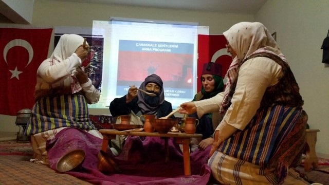 Muhtar Aksoy’un konuşmasının ardından ise din görevlisi Kamil Sağlam, günün anlam ve önemini belirten konuşma yaptı. Sinevizyon gösterisi ile başlayan program, “Sancaklar Düşmeyecek” konulu tiyatro gösterisi Kur’an Kursu bayanları tarafından üç bölüm halinde sahnelendi. Aylar öncesi bu geceye hazırlanan kadınlar, izleyenlere duygusal anlar yaşattı. Gösterimin ardından Cemile Kapusuz, Mümine Dağlı, Kerziban Akçil ve Azra Aksoy ve Veysel Eken tarafından şiirler okunurken, öğrenciler tarafından ise Çanakkale Şehitlerini anlatan şiirler okundu. Yoğun ilginin yaşandığı gece; Kargı Belediye Başkanı Zeki Şen, İlçe Jandarma Komutanı J. Tğm. Tayfun Köksal, İlçe Emniyet Amiri Komiser Yrd. Deniz Demirel tarafından şehit anneleri Hanife Kaplan, Cemile Ilgaz ve Kerziban Akçil’e hediyeler verildi. Daha sonra ise programı düzenleyen bayanlar ellerindeki zeytin dalları ile izleyenleri selamladı.