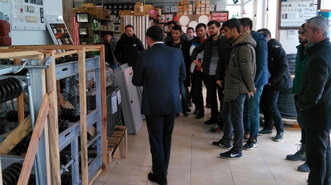 Teknik Bilimler Meslek Yüksekokulu Elektrik Programı öğrencileri tarafından “İşletme Yönetimi Dersi” kapsamında Çorum Yıldız Elektrik’e teknik gezi düzenlendi. Bu ziyaretlerde, Meslek Yüksekokulu Elektrik ve Enerji Bölüm Başkanı Yrd. Doç. Dr. Seyfi Şevik nezaretinde öğrencilerin eğitim aldıkları alanlarındaki işletmelerin kurulumu, işleyişi ve bunun yanında mesleki donanımlarını artırmaları ve sektördeki çalışma alanları hakkında bilgiler verildi. Ziyarette önce Yıldız Elektrik İnş. Müh. Şti. gezildi. Öğrencilere, Şirket ortakları Hüseyin Öztürk, Hüseyin Özkan ve Sinan Bulut tarafından şirketin kuruluş süreci, yönetim anlayışı, piyasa şartları, pazarlama teknikleri, iş alım sürecine ilişkin detaylı bilgiler verildi. Daha sonra Küçük Sanayi Bölgesinde kurulan ve kondansatör satışını yapan TIBCON A.Ş ziyaret edildi. Elektronik Mühendisi Hüseyin Öztürk eşliğinde tesiste öğrencilere yönetim süreci ile ilgili bilgiler verildi. Ayrıca, Güç Kondansatörü, Reaktif Güç Kontrol Rölesi, Ölçüm ve Anahtarlama Ürünleri, Kontaktör, Orta Gerilim Sigortası ve Harmonik Filtre gibi ürünlerin üretim ve satışı hakkında bilgiler aktarıldı.
