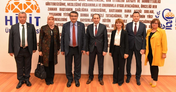 Hitit Üniversitesi Rektörü Prof. Dr. Reha Metin Alkan’ı makamında ziyaret eden heyete, Üniversitenin mevcut durumu, yapmakta olduğu çalışmalar ve orta, kısa ve uzun vadeli gerçekleştireceği projeler aktarılarak, değerlendirmeler yapıldı. YÖK Yürütme Kurulu Üyeleri Senato Üyeleri ve Üniversitenin farklı Fakülte, Yüksek Okul ve Meslek Yüksekokularında görev yapan öğretim elemanlarla bir araya gelerek, karşılıklı görüş alışverişinde bulundular. Öğretim elemanlarının Yükseköğretim ve YÖK ile ilgili sorularını yöneltme ve pek çok farklı konunun ele alınma fırsatı sunulan görüşmelerin ardından, Heyet önlisans, lisans ve lisanüstü öğrencilerimizle bir araya gelerek, görüştü. Heyet, toplantıların ardından 2017-2018 Eğitim Öğretim Yılından itibaren eğitime başlayacak olan Tıp Fakültesi öğrencilerinin eğitimlerini sürdürecekleri Tıp Fakültesi Morfoloji binasında incelemelerde bulundular.