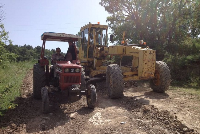 Oğuzlar’da yaylalara ulaşıma engel olan sarp yollar belediyenin yol çalışmaları ile engel olmaktan çıkıyor.