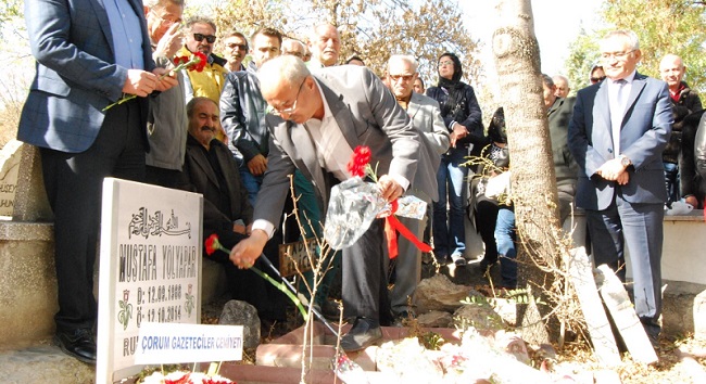 Çorum Haber’in eski Genel Yayın Yönetmeni, eski CHP Gençlik Kolları Başkanı, eski CHP Merkez İlçe Yönetim Kurulu Üyesi Mustafa Yolyapar, aramızdan ayrılışının 3. yıldönümünde kabri başında düzenlenen törenle hasret, özlem ve rahmetle anıldı. Çorum Gazeteciler Cemiyeti Onursal Başkanı, Mehmet Yolyapar’ın kardeşi olan Mustafa Yolyapar, 12 Ekim 2014 tarihinde 48 yaşında hayata veda etmişti. Mustafa Yolyapar için Çorum Gazeteciler Cemiyeti tarafından düzenlenen anma törenine Çorum Gazeteciler Cemiyeti Başkanı Şevket Erzen, Çorum Haber Genel Müdürü ve Çorum Gazeteciler Cemiyeti Onursal Başkanı Mehmet Yolyapar, merhum Mustafa Yolyapar’ın ailesi, Gazeteciler Cemiyeti Yönetim Kurulu Üyeleri, Basın İlan Kurumu Şube Müdürü Osman Bolluk, CHP eski İl Başkanları Cengiz Atlas, Osman Samsunlu, CHP İl yöneticileri, Tüm Bel Sen Şube Başkanı Nevzat Veldet, SES eski Şube Başkanı Merter Kocatüfek, Yazılıkaya Yayın Kurulu üyesi sanat dostları, sevenleri ile meslektaşları katıldı.