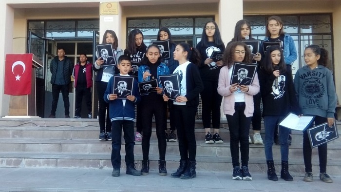Çorum merkez Yunus Emre Ortaokulunda Türk ulusunu bağımsızlığa kavuşturan, onu çağdaş uygarlığın ayrılmaz bir parçası gören ve çağdaş uygarlık düzeyine çıkaran Cumhuriyetimizin Kurucusu Büyük Önder Mustafa Kemal Atatürk sonsuzluğa yürüyüşünün 81.yıldönümünde, her zamankinden daha büyük bir özlemle anıldı. Öğrenciler okul içerisindeki panolara günün anlam ve önem ile ilgili resim ve yazılar astılar ve okul Atatürk büstüne çiçek bıraktılar. Tören saat dokuzu beş geçe saygı duruşunun yapılması ve İstiklal Marşının okunması sonrası Türk Bayrağı göndere çekildi ve yarıya indirilerek başladı. Okul Müdürü Bülent Yıldırım yaptığı konuşmada; “Yaşamını milletine adayan, bir imparatorluğun küllerinden yepyeni ve güçlü bir devlet yaratan eşsiz bir lider, mümtaz bir devlet adamı, büyük bir komutan ve dahi olan Atatürk bu ender insanlardan biri belki de en büyüğüdür. Atatürk, hem milli mücadele, hem de Cumhuriyeti inşa sürecinde daima ileriye bakmış, ileriye yürümüştür. Yalnızca 10 Kasımlar değil, düşünce ufkumuzda Atatürk’ün mücadele azmi, bizlere yüklediği sorumlulukları ve gösterdiği hedefler asla unutulmamalıdır, ülkemizin en zor anında bile düşünüp ortaya koyduğu milli hedef ve stratejilerin hatırlanması, bu tür çabaların anlam ve değerinin çok iyi bilinmesi gerekmektedir. Ancak bu şekilde ulu önderin kutsal emanetini gelecek çağlara ve nesillere ulaştırabiliriz “dedi. Okul öğrencileri tarafından Atatürk´ün hayatını anlatan yazılar ve şiirler okundu. Okul korosu “Atam sen rahat uyu” adlı marşı seslendirdi. Programın sonunda ise; okul ana sınıfı öğrencileri; “Saat dokuzu beş geçe” şiirini koro halinde okudular. Anma programını okul öğretmenleri, öğrenciler, ve veliler birlikte izlediler.