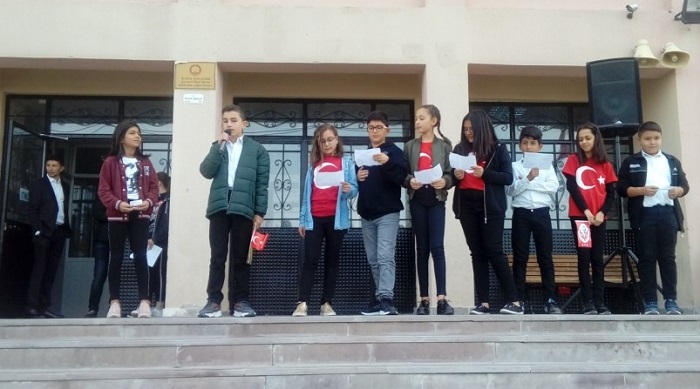 Çorum merkez Yunus Emre Ortaokulu’nda Bugün ve yarınlarımızın mimarı Atatürk’ün Türk milletine Cumhuriyeti armağan edişinin 96.yıl dönümü veli, öğrenci ve öğretmenlerin katılımıyla kutlandı. Okul bahçesinde yapılan program saygı duruşu ve İstiklal Marşımız ile başladı. Okul müdürü Bülent Yıldırım günün anlam ve önemini belirten konuşmasını yaptı. Yıldırım konuşmasında; “Türk Kurtuluş Savaş’ı imkansızları başaran, olağanüstü çabaya dayanan bir milleti tek yürek haline getiren inanç savaşı olmuştur. Bugün Cumhuriyetin 100.yılını kutlamaya hazırlanan yeni nesiller olarak bize miras bırakılan o şanlı tarihi ve o kutsal İstiklal ruhunu heyecanla, sadakatle bağrımıza basıyoruz. Büyük milletimizin Cumhuriyet bayramını kutluyor, aydınlık bir geleceğe doğru daha nice yıllar, birlik, beraberlik ve esenlikle yürüme umudumuzu bir kere daha tazeliyoruz” dedi. Programa öğrencilerin hazırlamış oldukları yazı ve şiirlerle devam edildi. Programın sonunda ise Okul Korosu, Okul Müzik Öğretmeni Hasan Akay eşliğinde şarkılarını seslendirdi.