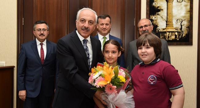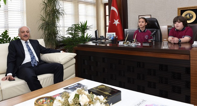 23 Nisan Ulusal Egemenlik ve Çocuk Bayramı kutlamaları etkinlikleri çerçevesinde Bahçelievler İlkokulu öğrencileri Efehan Bora Ünsal ve Ada Kılıçarslan Belediye Başkanı Zeki Gül’ün makamına oturdu. Öğrencilerin temsili olarak makam koltuğuna oturduğu etkinlikte Milli Eğitim Müdür Yardımcısı Hüseyin Kır, Bahçelievler İlkokulu Müdürü Olgun Çakır, Öğretmen Hasan Ayhan Leblebici hazır bulundu. Öğrencilerden Ada Kılıçarslan, Çorum’un temiz illerin başında geldiğini ifade ederek, insanların daha duyarlı davranarak temizlik konusunda çok daha iyi bir noktaya gelebileceğimizin mesajını verdi. Çocukların şiddete ve istismara uğradığını dile getiren Bahçelievler İlkokulu 3.sınıf öğrencisi Ada Kılıçarslan ise velilere seslenerek, Çocuklara kötü davranmayalım. 23 Nisan’da her çocuk mutlu olsun. Çevre temizliği konusunda da Belediyemiz çok güzel çalışıyor. Vatandaşlarımız çöpleri yerlere atmamalı” dedi. Bahçelievler İlkokulu 3.sınıf öğrencisi Efehan Bora Ünsal, vatandaşlardan su tasarrufu yapmalarını ve su tüketimi konusunda tutumlu olmalarını istedi. 23 Nisan Ulusal Egemenlik ve Çocuk Bayramı kutlamaları çerçevesinde makamını temsili olarak çocuklara bırakan Belediye Başkanı Zeki Gül ise, çocukların bayramını kutladı. 23 Nisan’da kurulan meclisin sonsuza kadar devam etmesi temennisinde bulundu. Başkan Gül, “23 Nisan Ulusal Egemenlik Çocuk Bayramı Programlarımız kapsamında evlatlarımıza Belediye Başkanlığı makamını teslim ettik. Çocuklarımızın hem ilimizle ilgili hem de ülkemizle ilgili bilgi birikimleri beni son derece memnun etti. Meclisin açıldığı günlerdeki şuuru ülke olarak her zaman taşımamız gerekiyor. Bugün koltuğu emanet ettiğimiz öğrencilerimiz başkan ve başkan yardımcısı olarak talimatlar verdiler. O talimatları temizlikle ilgili, kültür merkezleriyle ilgili talimatları takip edeceğiz. Ben bir kez daha tüm çocuklarımızın, hemşehrilerimizin 23 Nisan Ulusal Egemenlik ve Çocuk Bayramını tebrik ediyorum” dedi.